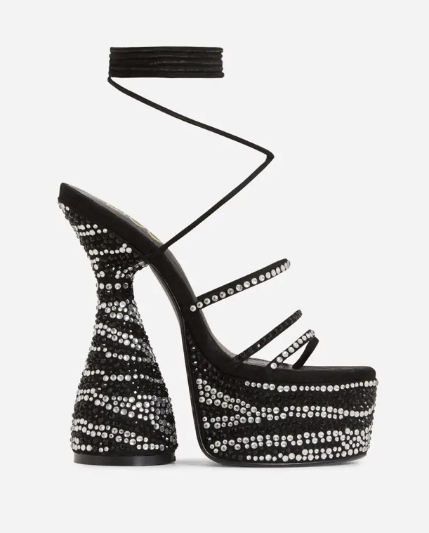 -Lace Up Peep Toe Platform